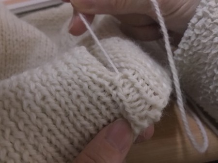 自分サイズのセーター(ハイネックのプルオーバー) ⑤ 袖編み〜半返し縫いでの袖付け