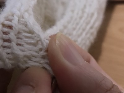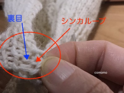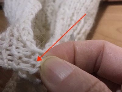 編み地の中に隠れてしまいやすくて、一目ゴム編みの場合、隣の裏目を間違えて拾ってしまいがちでした。